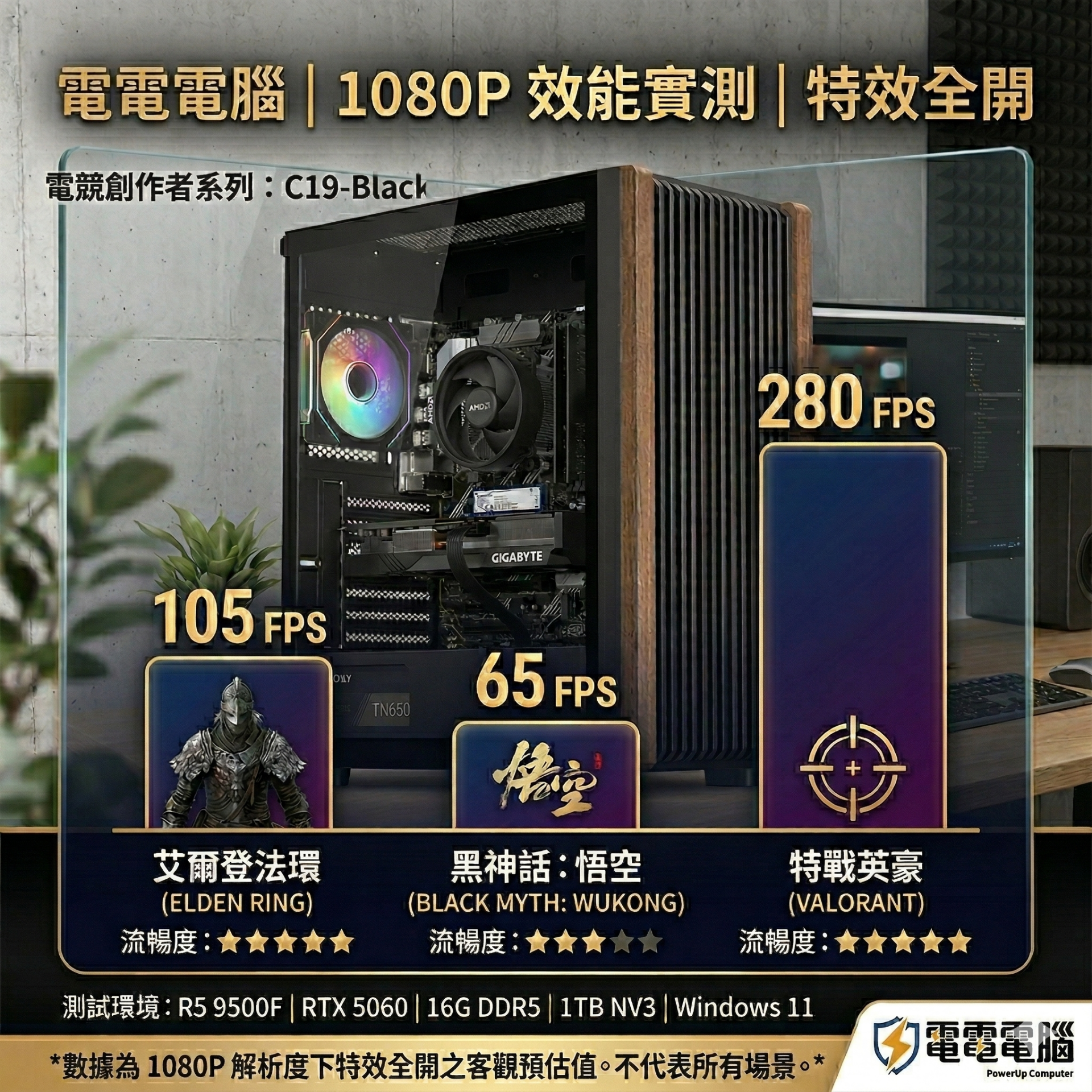 圖片 🔥 【R5 9500F | RTX 5060】INFINITE TIMBER C19 黑 — 現代居家美學,散熱與顏值兼具的創作者主機,日付 $62 起! 🔥