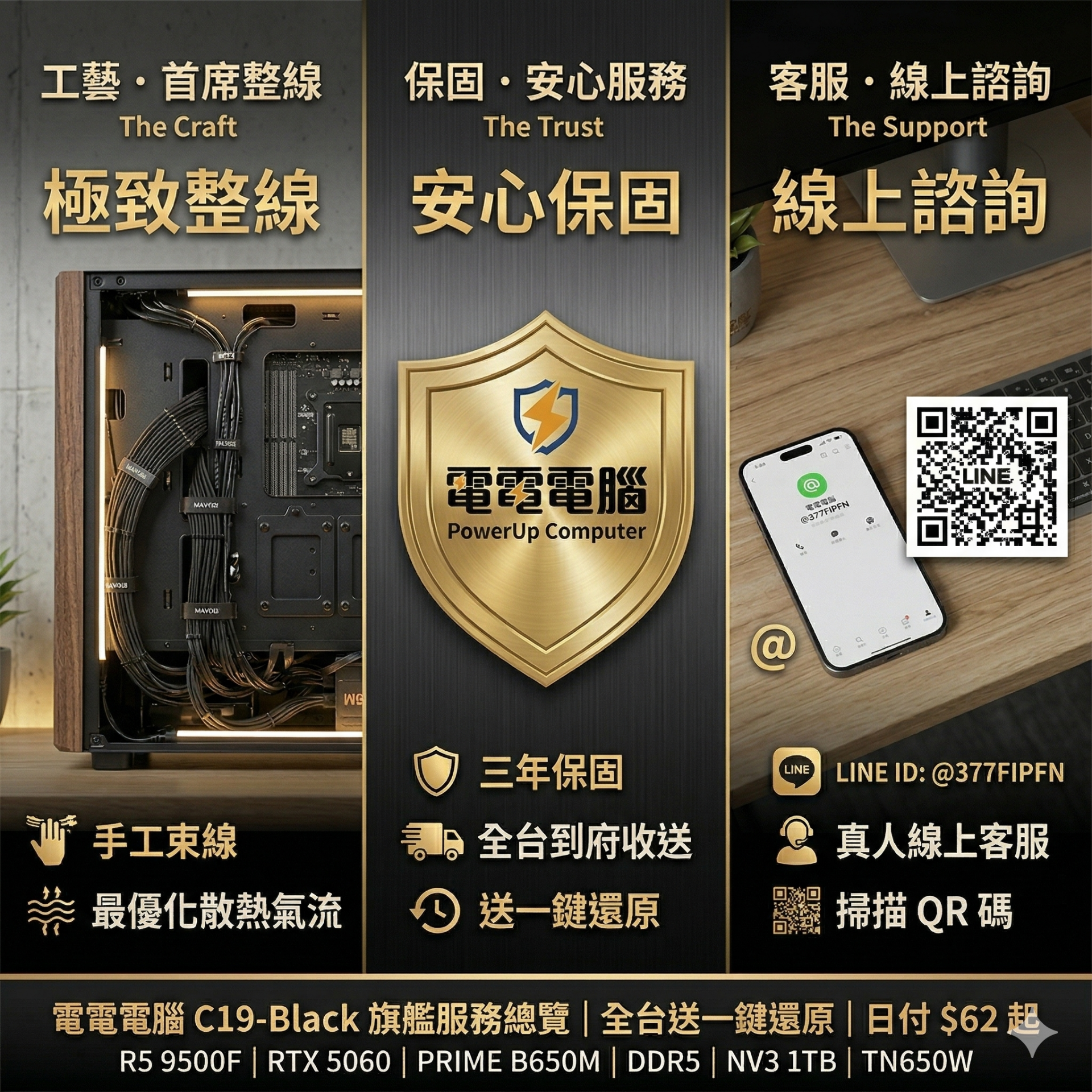 我們知道你買的不只是效能,更是售後的無憂與專業的服務。電電電腦首席視覺總監親自把關,給你最全面的信任承諾: