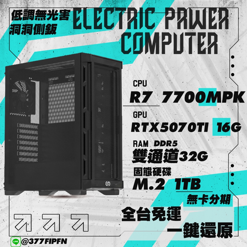 🌈R7 7700 RTX5070Ti 16G 雙通32G 超低調無光害 高CP值 無卡分期🌈黑悟空 魔物獵人 特戰英豪 3A大作