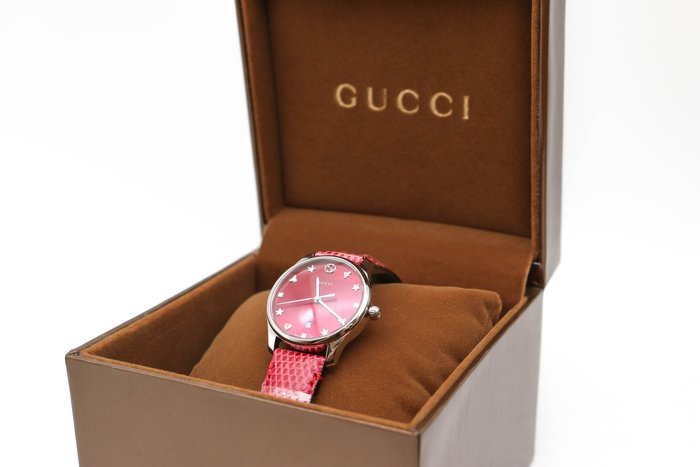 商品規格|GUCCI 精品女錶 G-Timeless 紅 珍稀蜥蜴皮 手錶  29MM