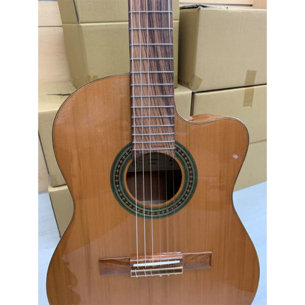 面板:實心 A+ 西部紅柏 背板&側板:桃花心木 形狀:古典帶剖面圖 琴頸:桃花心木,50/50 半光澤飾面 琴橋:雙層印度月桂樹/紅木 指板:印度月桂/玫瑰木,帶第 12 品鑲嵌 上/下琴枕:真骨 調音器:Chrome Open Gear Strip 拾音器 / 效果器:LR Baggs StagePro EQ 和 Element Pick Up