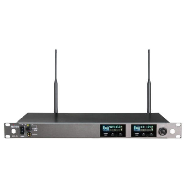 - 天線座提供強波器偏壓,可以連接MIPRO天線系統提升接收效果。金屬面板裝配主動式發光、沒有視角、深具魅力的彩色VFD顯示接收機各項操作訊息。VFD會自動改變亮度,以識別「工作」與「待機」頻道。