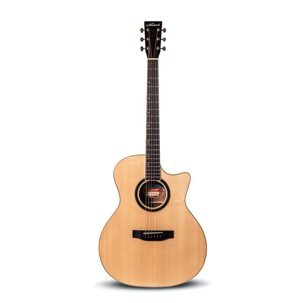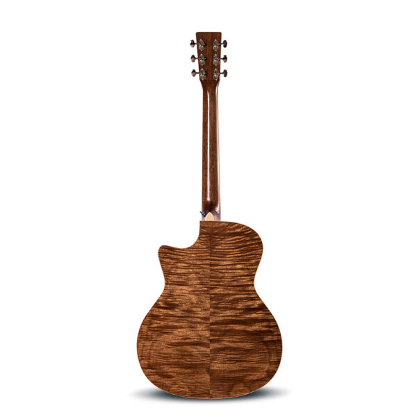 SGA5GC為Grand Auditorium桶身缺角款,桶身介於DN與OM之間,單板北美A級雲杉木面板搭配虎紋桃花心木側背板,