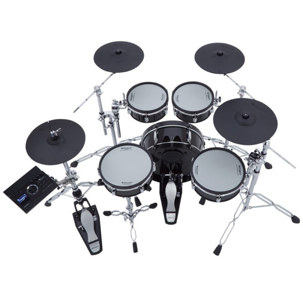 - 省空間的 V-Drums Acoustic Design 套鼓,具有淺鼓身鼓殼和和升級的雙支撐鍍鉻鼓架s