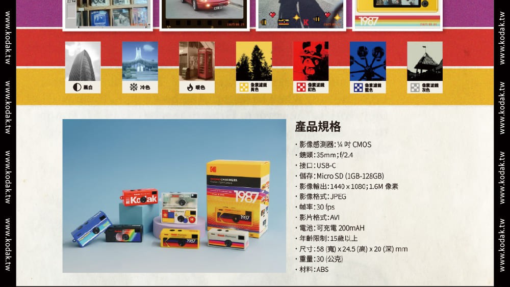 柯達Charmera鑰匙圈數位相機*1、USB-C充電線、鑰匙圈