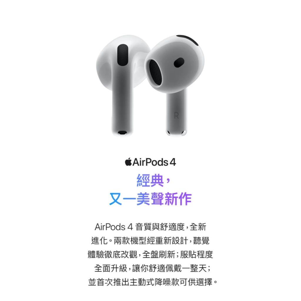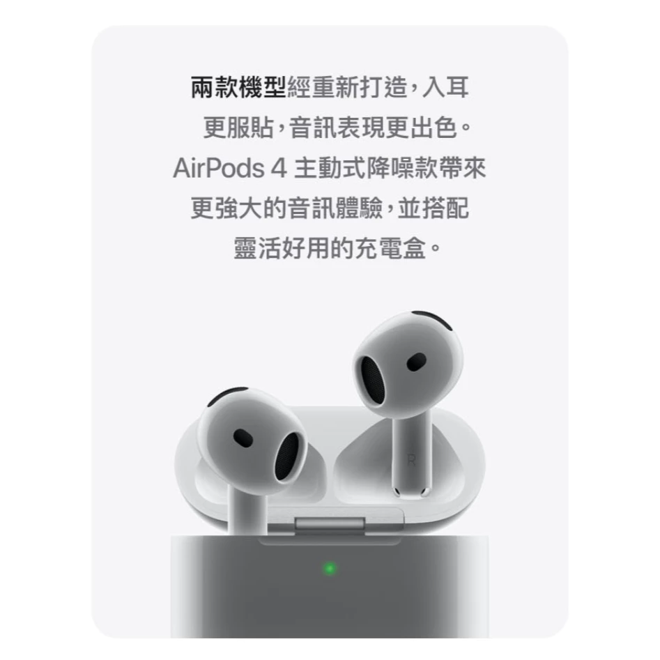 型號:Apple AirPods 4 藍芽耳機 主動式降噪款