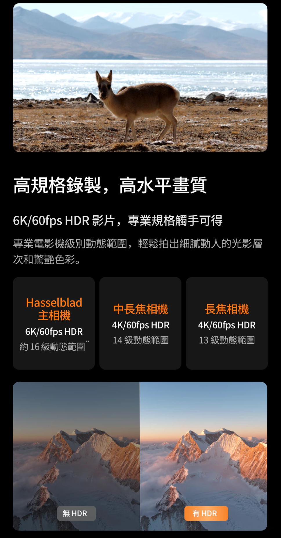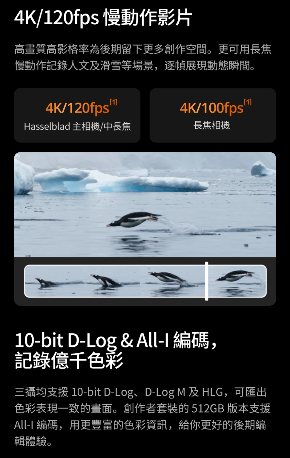 ● 一億像素 4/3 CMOS Hasselblad 相機,6K/60fps HDR 影片