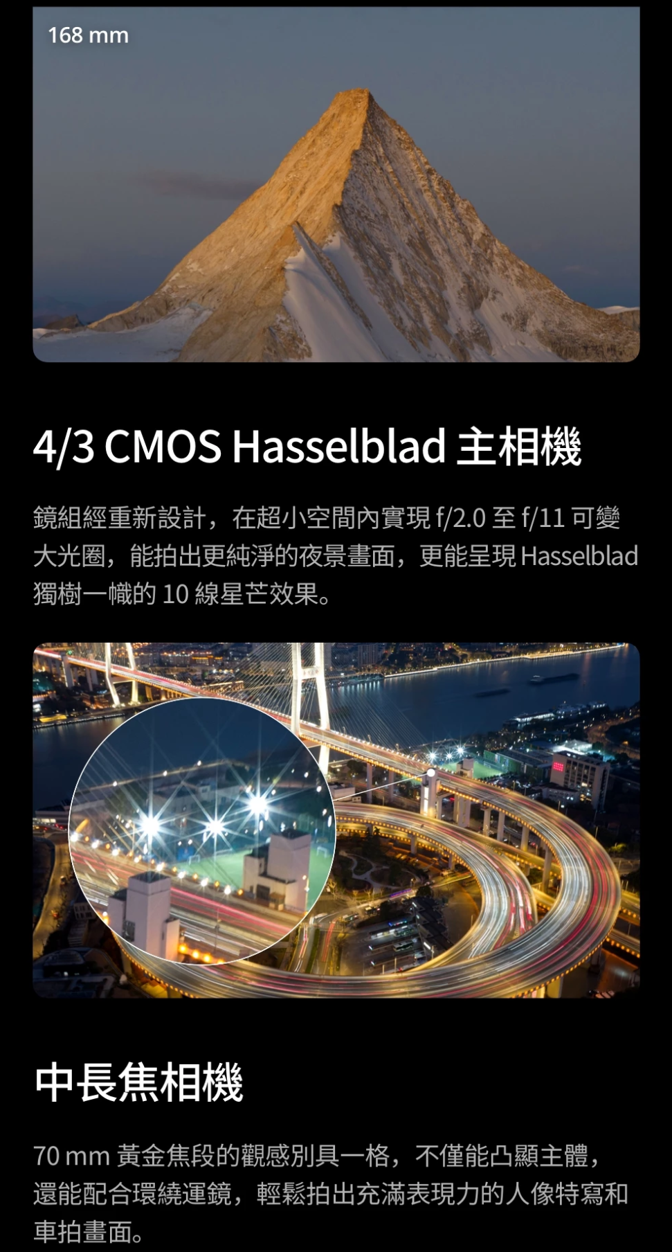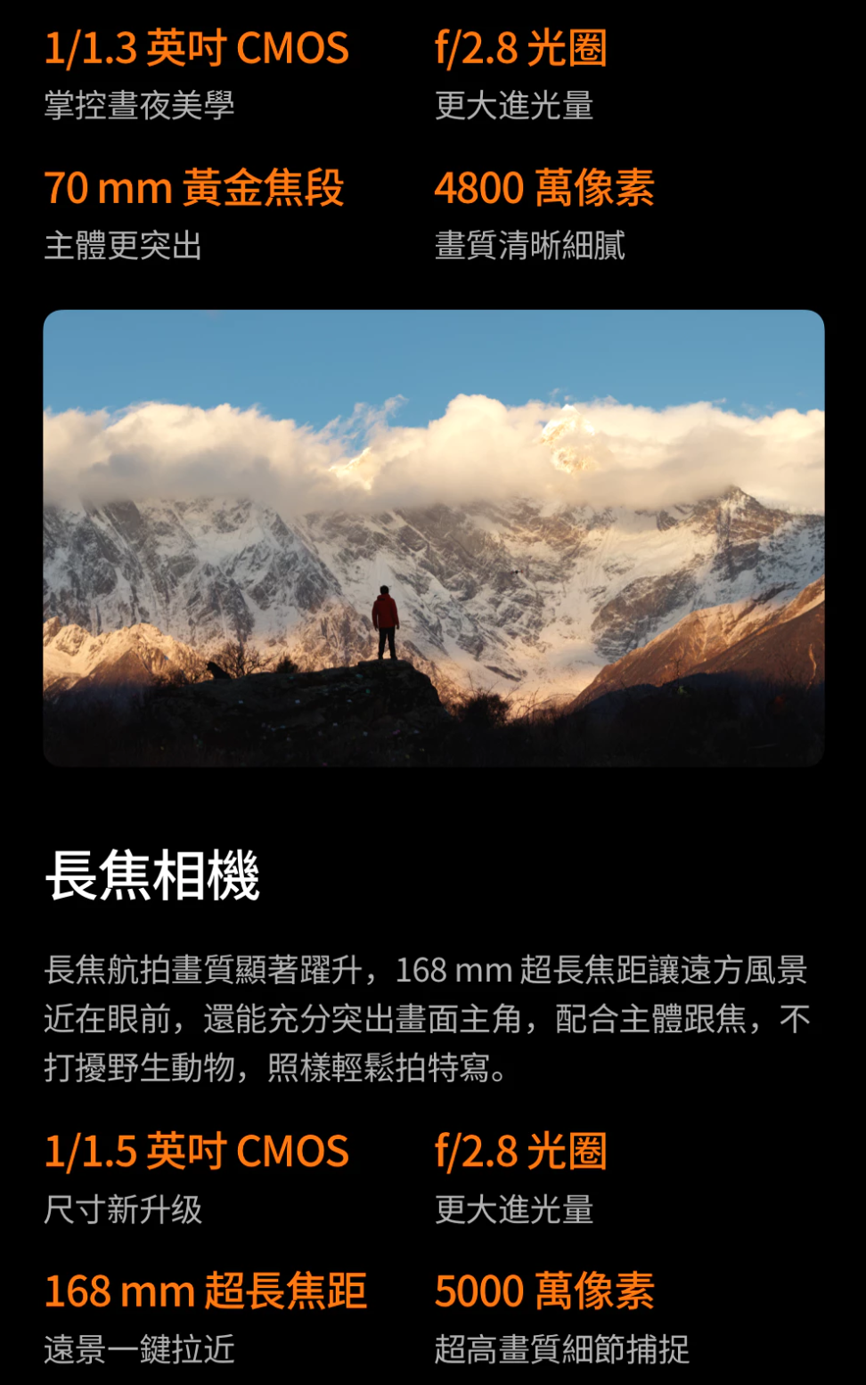 ● 1/1.3 英吋與1/1.5英吋大底雙長焦相機