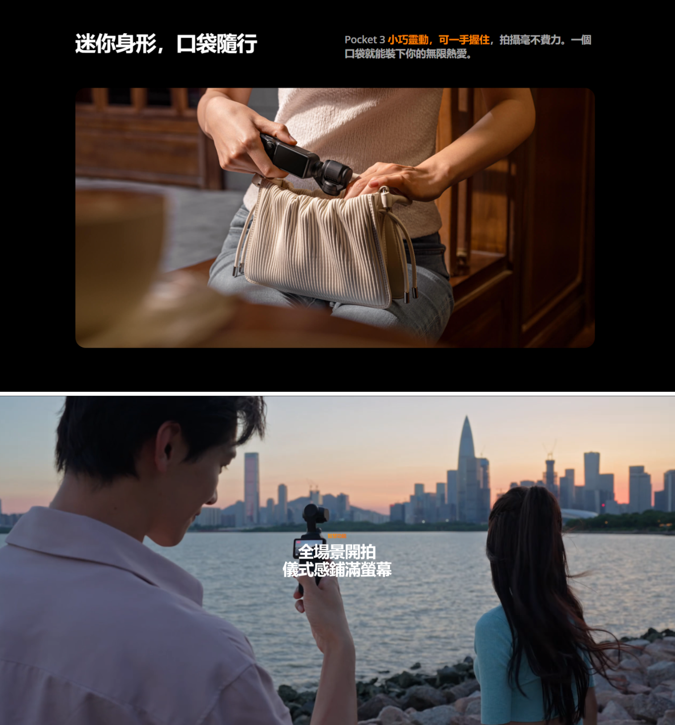 【DJI】 POCKET 3 手持口袋攝影機 相機 1英吋CMOS 2英吋旋轉屏 【全能套裝版】
