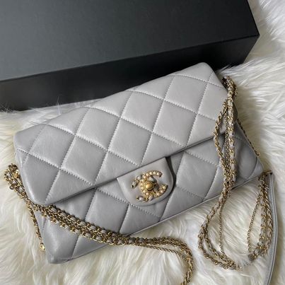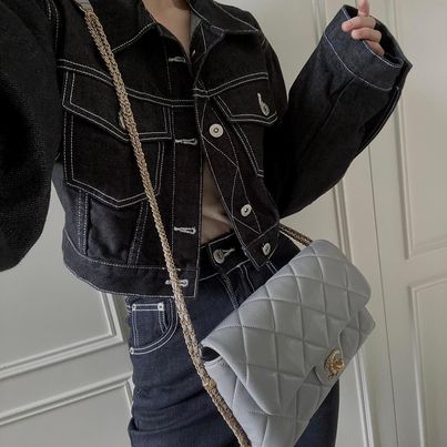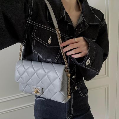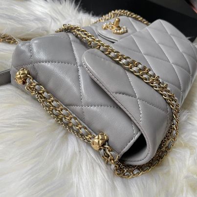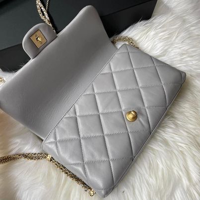 灰金鴛鴦釦斜背包 芯片款有袋盒 尺寸26/15/5 太美了 細節都很精緻❤️‍🔥
