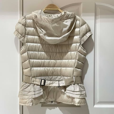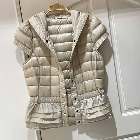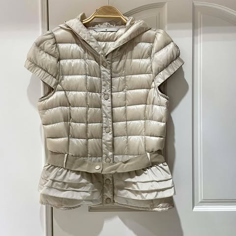 蒙口泡泡袖淺奶茶連帽背心 2碼 肩38長51 好可愛呀這件 ~~ 輕羽絨外面都還可以疊加外套 一路穿到春天都沒問題😍