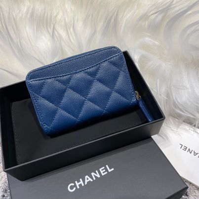 藍金荔枝拉鍊零錢卡包 32開有卡袋盒全配 台灣購入