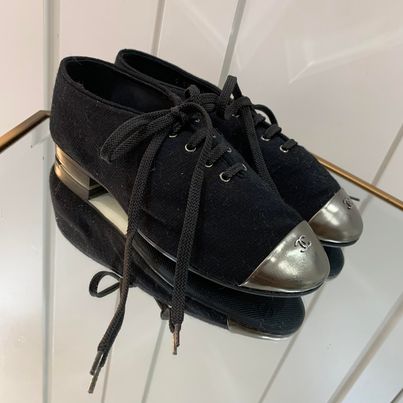 37號 黑色毛料銀色金屬綁帶鞋💫 已加好底 /有袋有盒