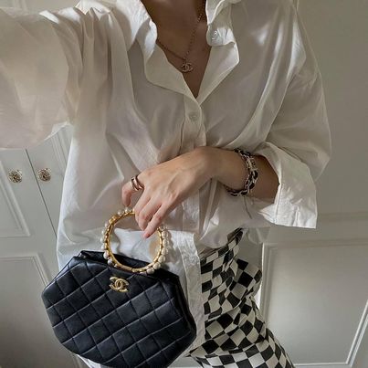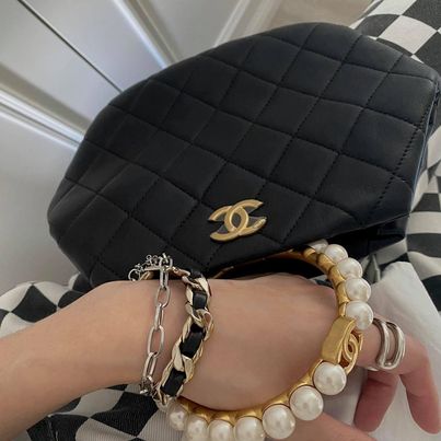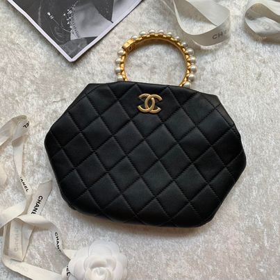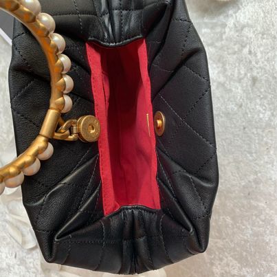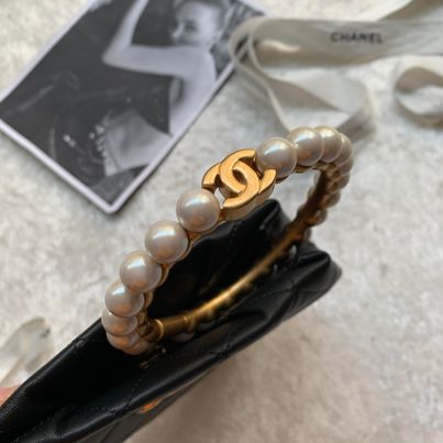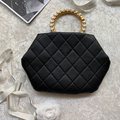 Chanel 2021秋冬早秋手工坊 黑金拋光羊皮珍珠晚宴包 芯片款有袋盒 Pro max不加殼能放入