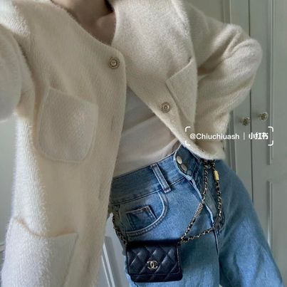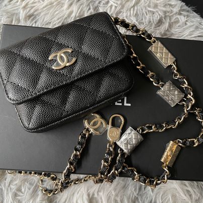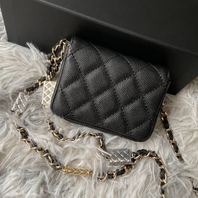 黑金荔枝金屬cf小腰包 太精緻了值得收藏 吸釦式開口 全新全配購證影本 也有同款斜背風琴鏈條小包