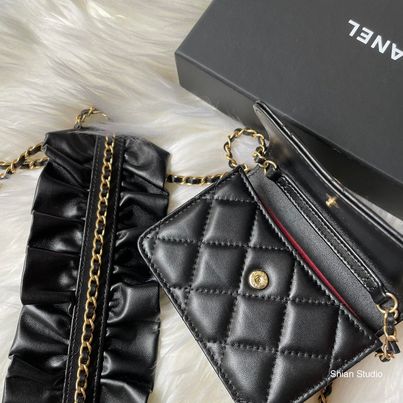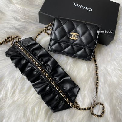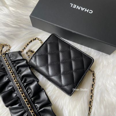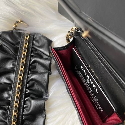 黑金菱格荷葉邊鏈條小包 全新全配卡袋盒台灣購證影本 甜甜帶走✈️