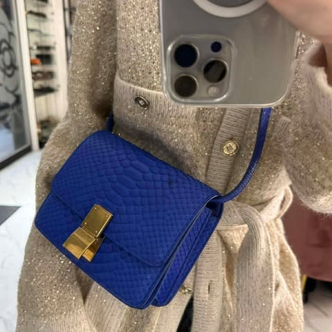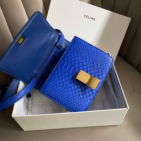 喜歡稀有皮不要錯過 Celine絕版電光藍蟒蛇皮box 配件塵袋盒子吊牌 尺寸16*13*7cm 閒置正面有一處小痕跡 反映在價格上甜甜出 自用太划算了