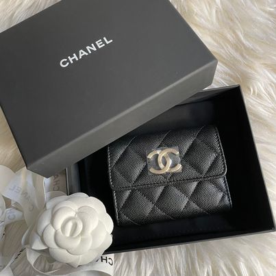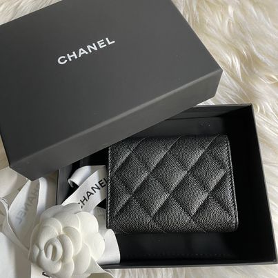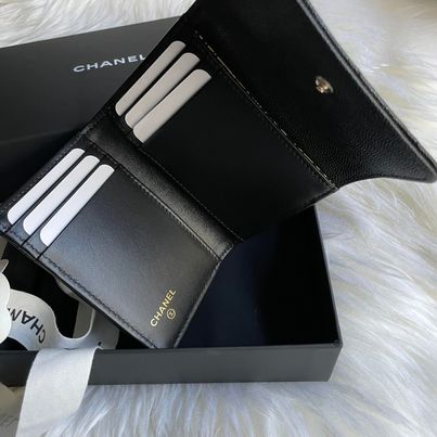 Chan 黑金荔枝大c三折卡包 全新 芯片款有袋盒購證