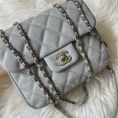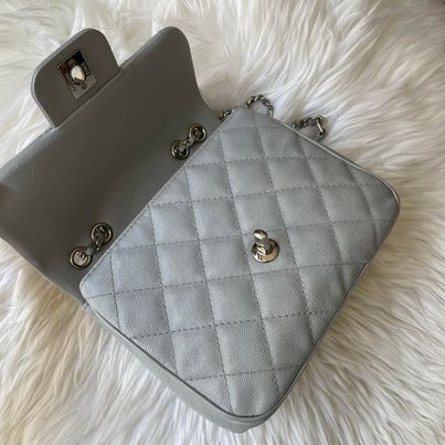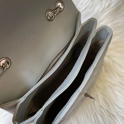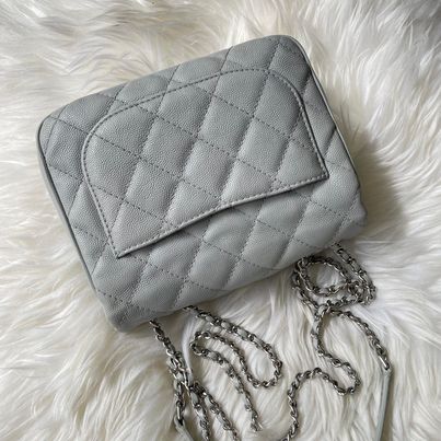Chanel冰川灰銀釦雙層荔枝皮方胖子 25開有卡有袋 尺寸20/16/7 內裡有三層容量非常好裝 實用兼具美麗的一款 可以三揹~絕版美物