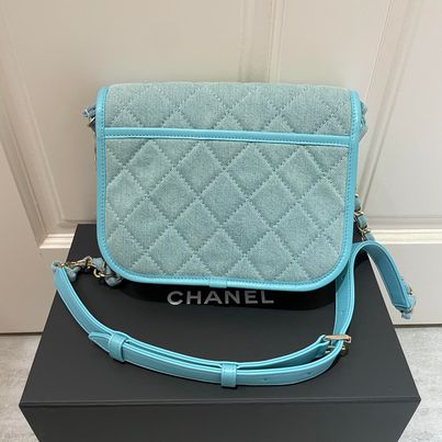 Chanel天藍色牛仔郵差包💙