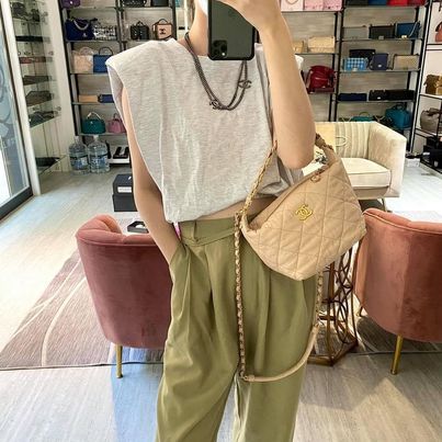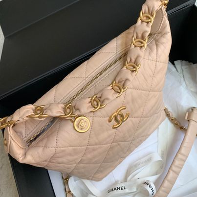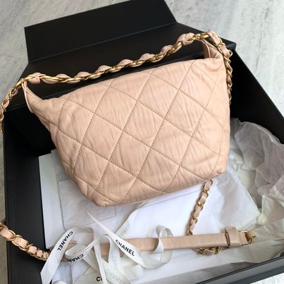 Chanel米金皺摺羊皮hobo包 31開有卡袋購證 尺寸25/18/13 容量更好裝~ 提把部分非常精緻❤️