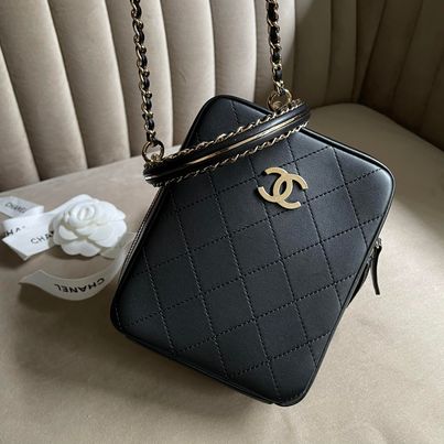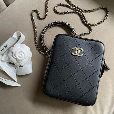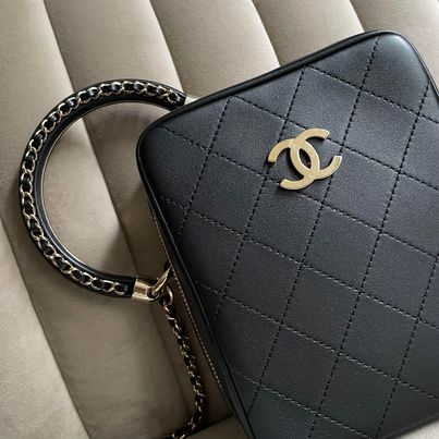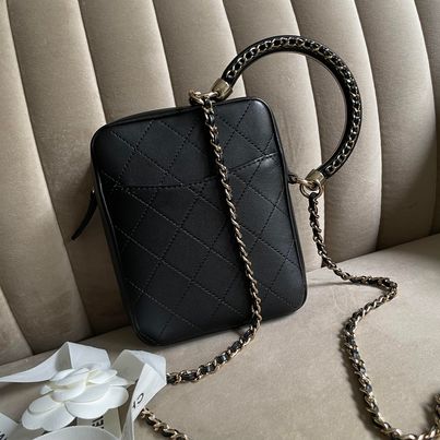 Chanel黑金半月編織手柄相機包