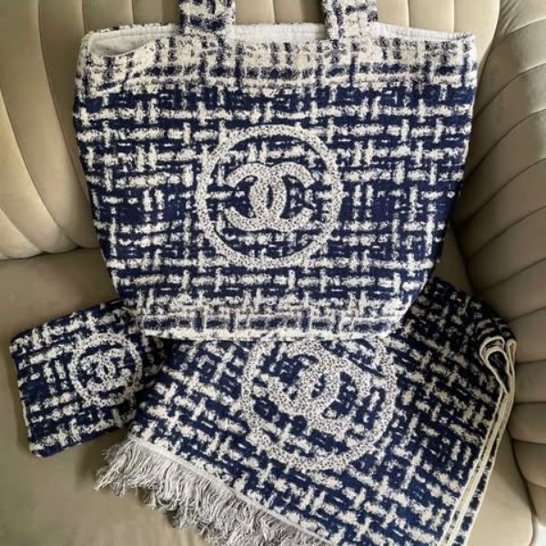 Chanel 三合一沙灘包 全新台灣購證 內裡附毯子&手包 出門旅遊帶一個大包就ok啦~