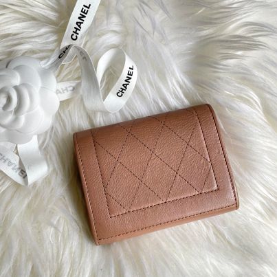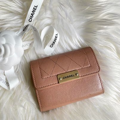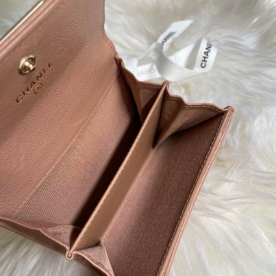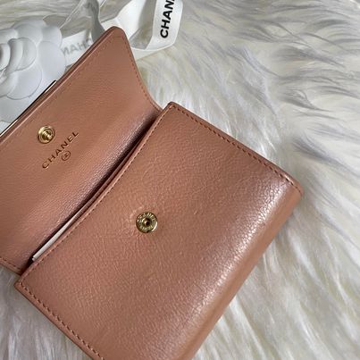Chanel 奶茶色金釦牛皮雙層卡包 24開有卡