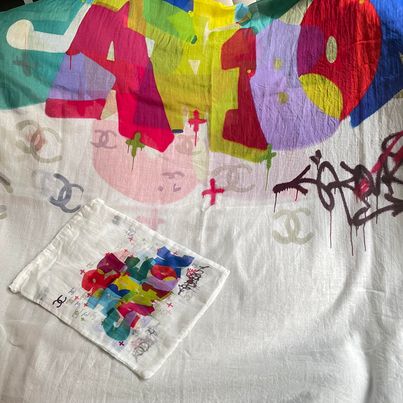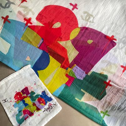 Chanel 彩色印花手繪感圍巾+收納袋