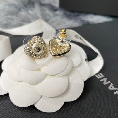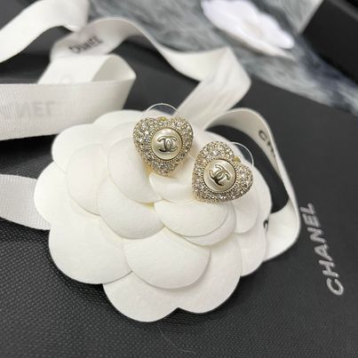 Chanel 愛心珍珠水鑽耳針 全新全配台灣購入 尺寸1.5