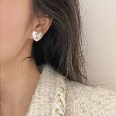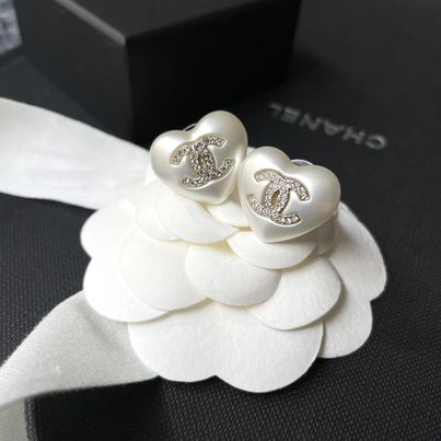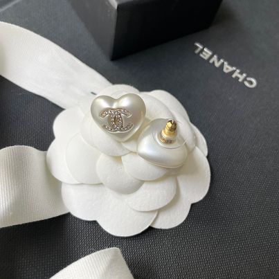 Chanel 愛心珍珠耳針