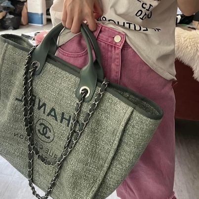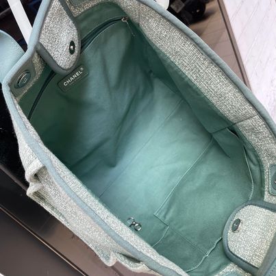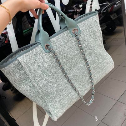 Chanel 抹茶綠銀釦手提肩背沙灘包 25開無卡有袋有型號標 尺寸38/30/22