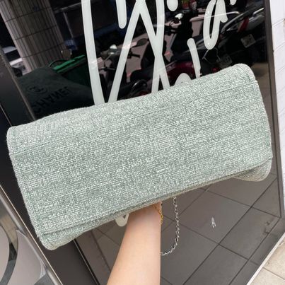 Chanel 抹茶綠銀釦手提肩背沙灘包