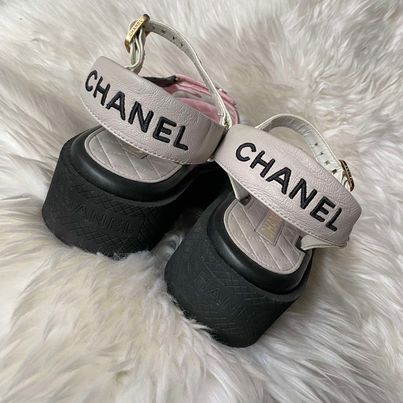 Chanel 拼色增高涼鞋 38半 有台灣購證影本 原價$44800直接現省! 這雙真的超好看 非常輕~ 有正常穿過痕跡