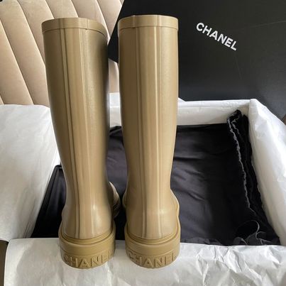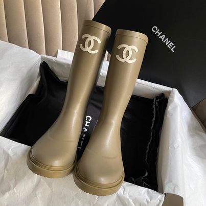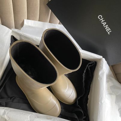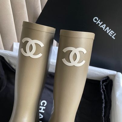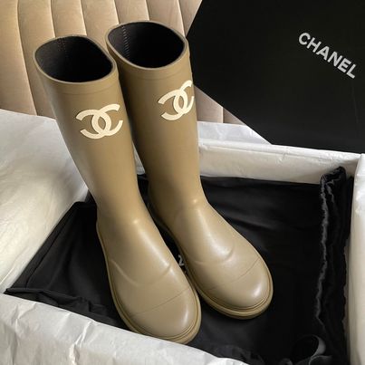 Chanel 橄欖綠雨靴 黃金尺寸38號 全新全配台灣購證