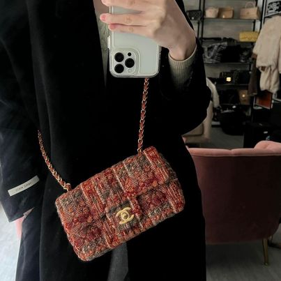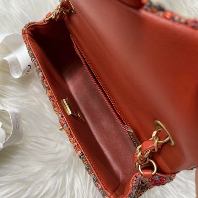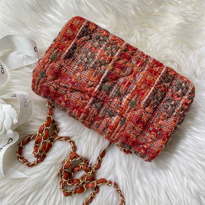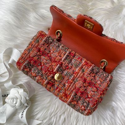 Chanel 橘色霧金釦毛呢mini cf 21年早秋手工坊 芯片款有袋盒購證 上海購入 很有楓葉🍁的感覺 全新閒置品 實品非常驚艷的美🥰🥰