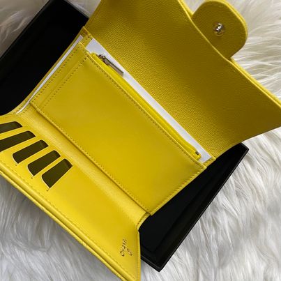 Chanel 檸檬黃經典荔枝三折中夾 全新芯片款袋盒購證 鈔票不用折 超級春夏亮眼的一顆~