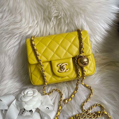 Chanel 檸檬黃金球方胖子 全新全配件 尺寸17cm 超級可愛適合春夏的顏色💛💛