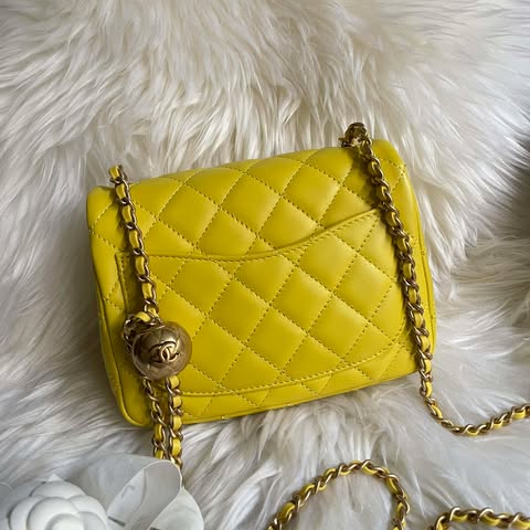 櫃上18萬多 Chanel 檸檬黃金球方胖子 全新全配台灣購證 尺寸17cm
