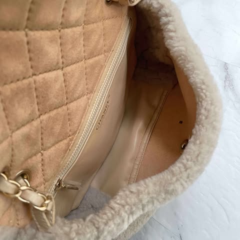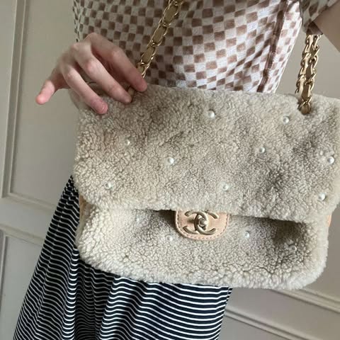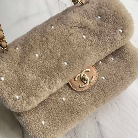 Chanel 泰迪麂皮珍珠毛毛包 20開配件有塵袋購證 尺寸25*17*10cm