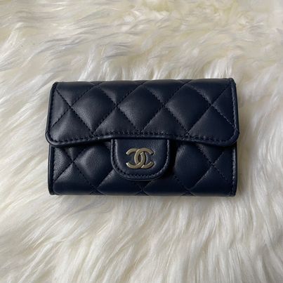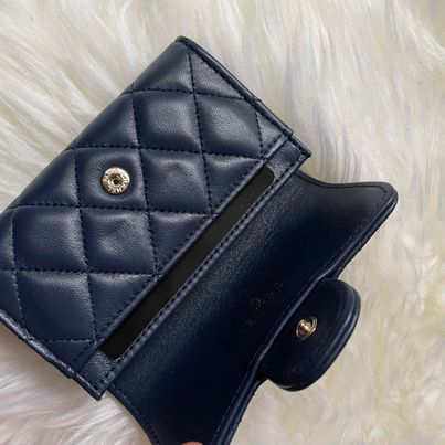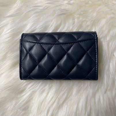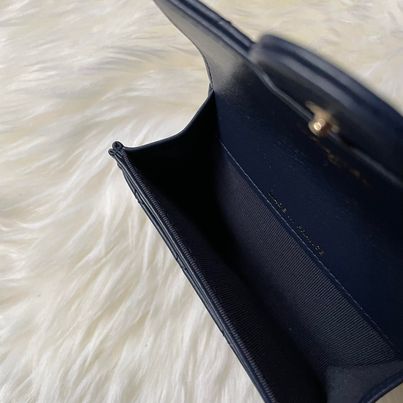 Chanel 深藍金釦羊皮卡包 31開卡袋盒全配 台灣購入