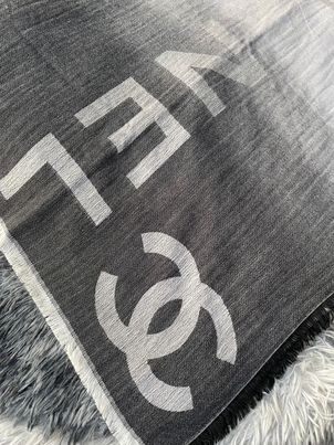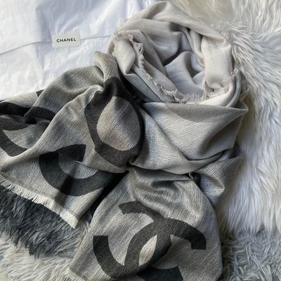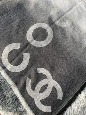 Chanel 灰色漸層字母圍巾 全新全配 有宣紙購證型號標 85%克什米爾+15%絲質 這條真的很舒服🥨