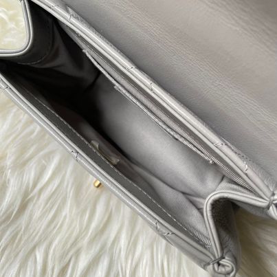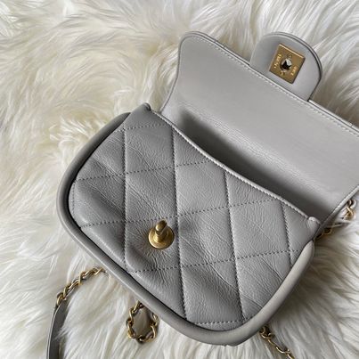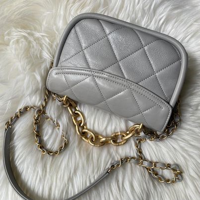 Chanel 灰金菱格手提斜背小馬鞍 芯片款配件有塵袋 尺寸19/16/10