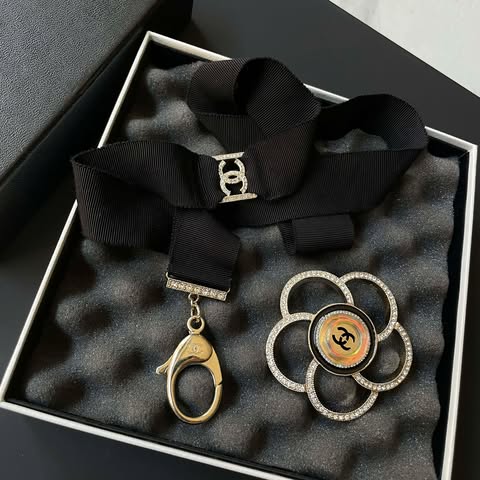 Chanel 秀款水鑽山茶花掛繩
