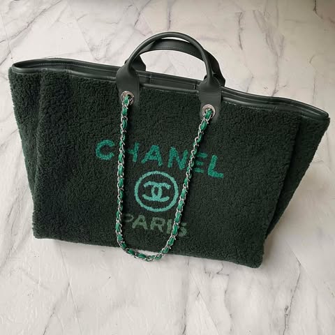 Chanel 秀款 森林綠羊羔毛字母沙灘包 26開配件有塵袋 大號尺寸44*35*11cm 物主訂製一個內膽包 宋茜同款🌲