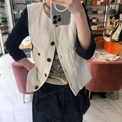 Chanel 秀款 深藍拼白華夫餅格紋針織外套 36碼 肩35 胸43 長51 面料混金銀絲線 版型合身
