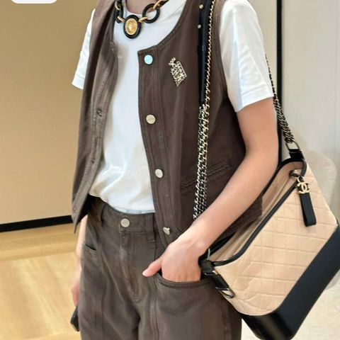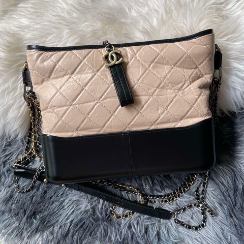 Chanel 米黑牛皮流浪包 24開配件有保卡 中號尺寸28*22*10cm 已經去專櫃換過鍊子啦~ 附上一個內膽包