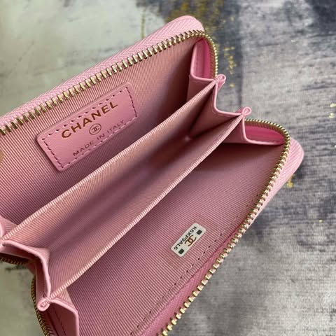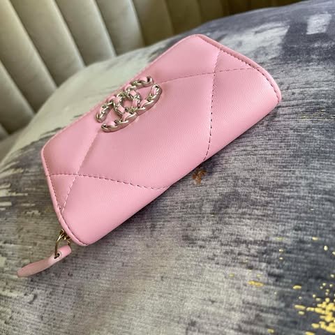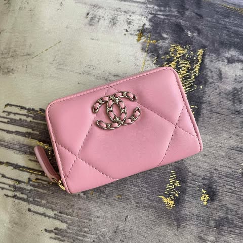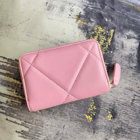 Chanel 粉紫色銀釦編織19拉鏈零錢卡包