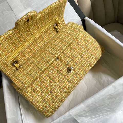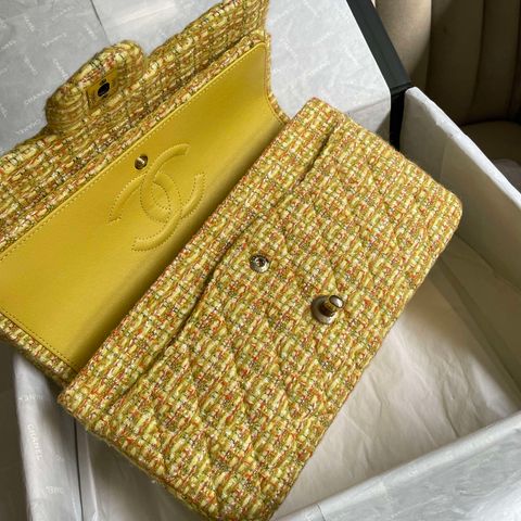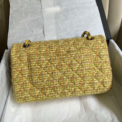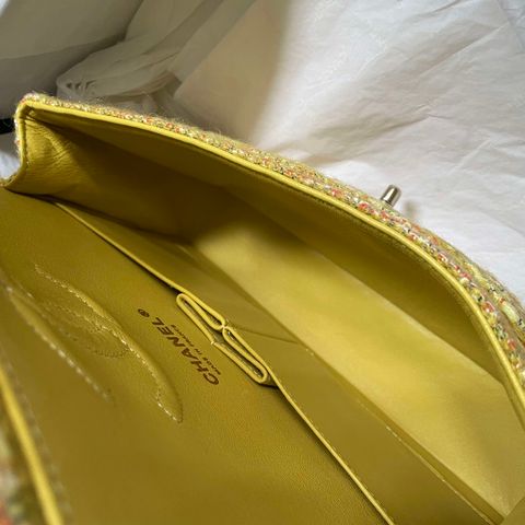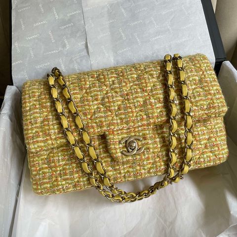 Chanel 芥末黃毛呢針織cf 16開配件有塵袋 尺寸25cm