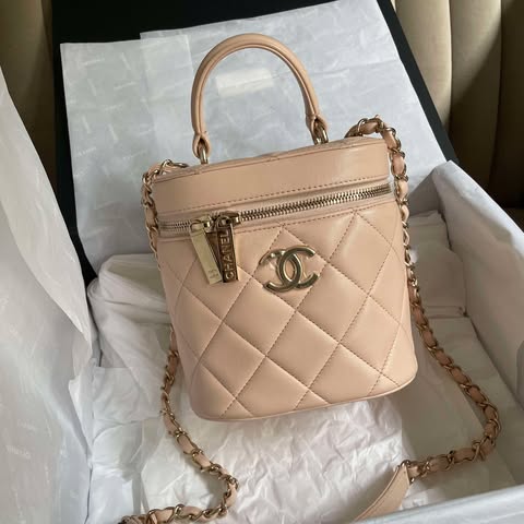 Chanel 裸粉金釦羊皮trendy化妝包 芯片款配件有塵袋購證 尺寸15.5*15.5*12cm 原價$151700直接現省帶走 還有同款灰色